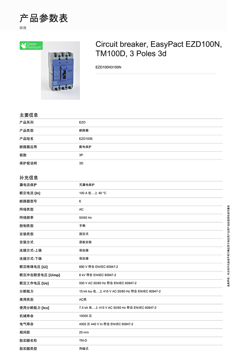 簡(jiǎn)介內(nèi)容:施耐德塑殼斷路器EZD系列配電用固定式斷路器EZD100